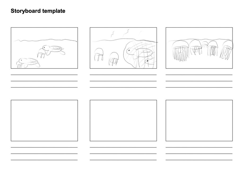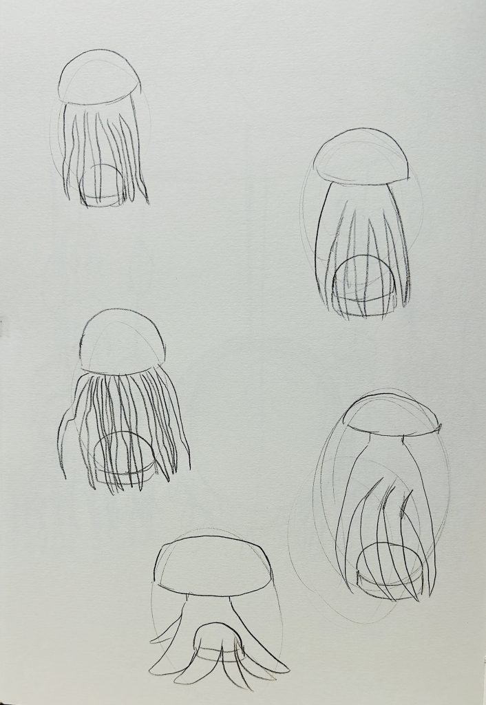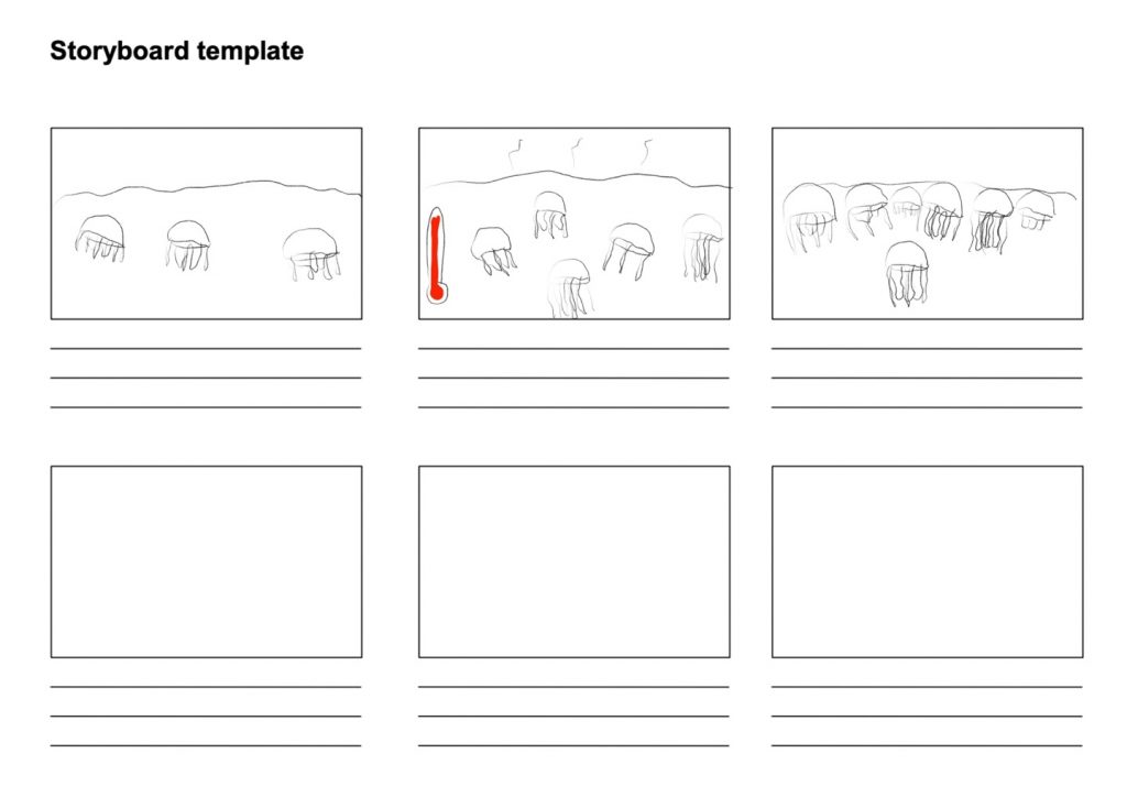 I drew some storyboards and idea sketches at first. I planned to create a short video with a story of increasing jellyfishes because of overfishing their enemies like turtle. But I thought it is not suit for the main idea of climate change, so I changed as be closer to the idea. And I guessed I need to draw more sketches for expressing the topic of climate change and jellyfish.