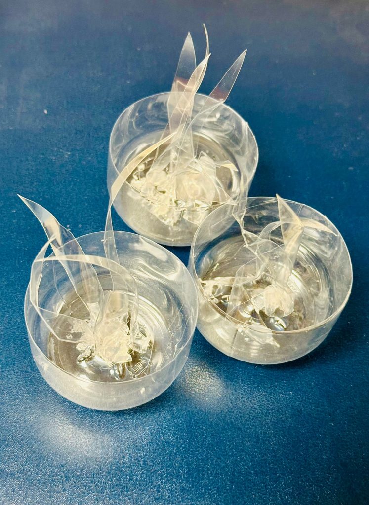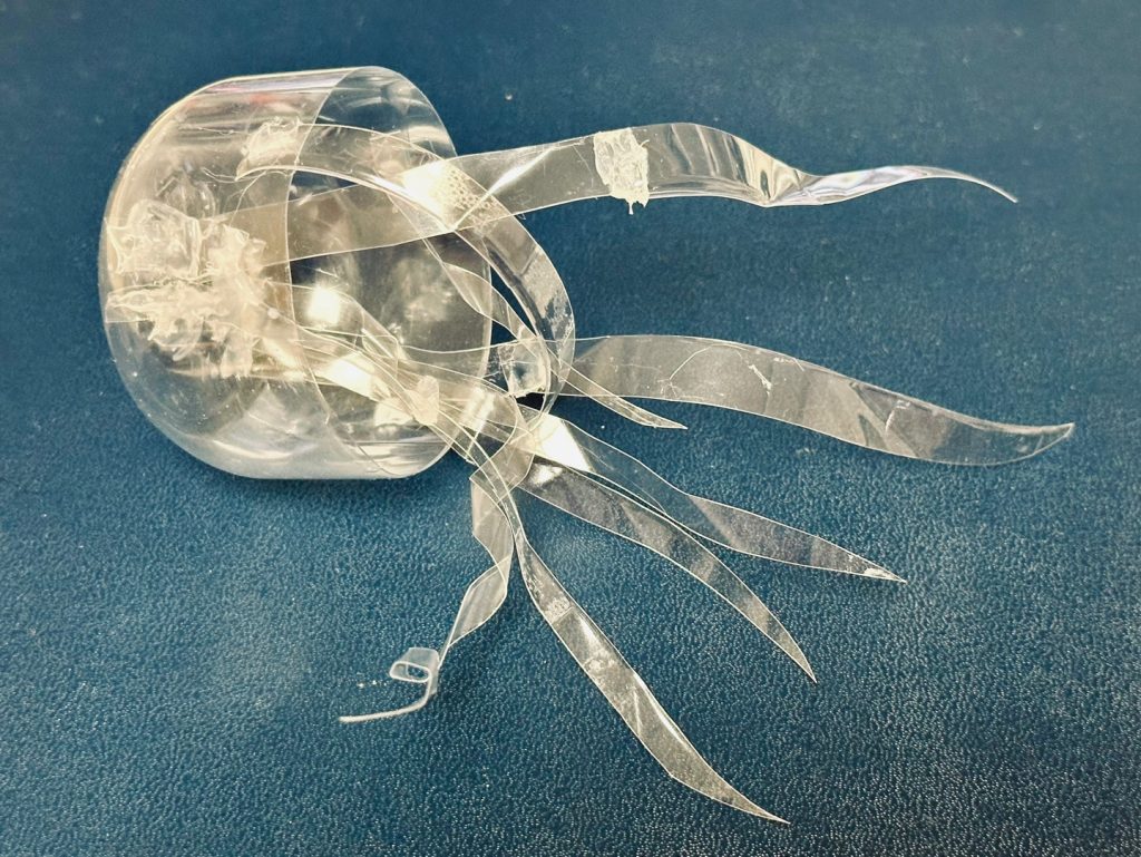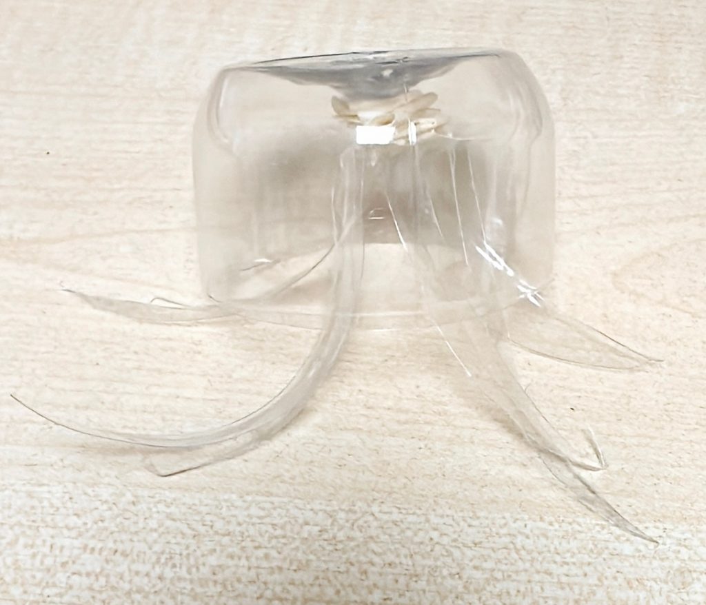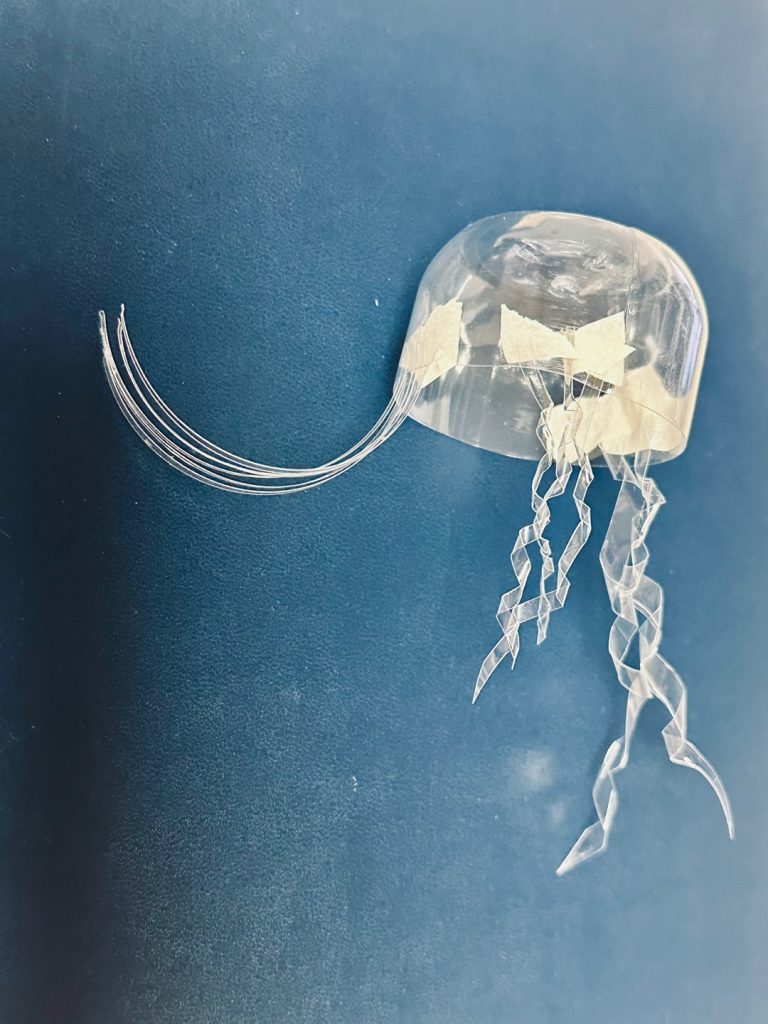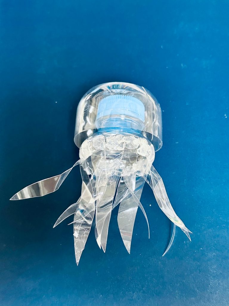 I would like to try to make jellyfish crafts with reusing materials like plastic bottles and bag. I believe plastic stuffs, while useful for humans, can be harmful to marine animals. For example, jellyfish, which are dangerous to humans, are actually a great food source for creatures like turtles. Also, I thought it could show recycling is one of solutions for preventing climate change as using recyclable ones. I tried to made jellyfishes with plastic bottle at first. I thought the bottom part was useful for expressing the head of jellyfishes more than the top part because it was easier to stick the oral arms inside of the bottom one. But I also worried that could mislead it as an octopus, so I thought I need to make more experiments using other materials.